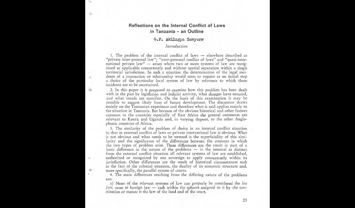 Reflections on the Internal Conflict of Laws in Tanzania – An Outline