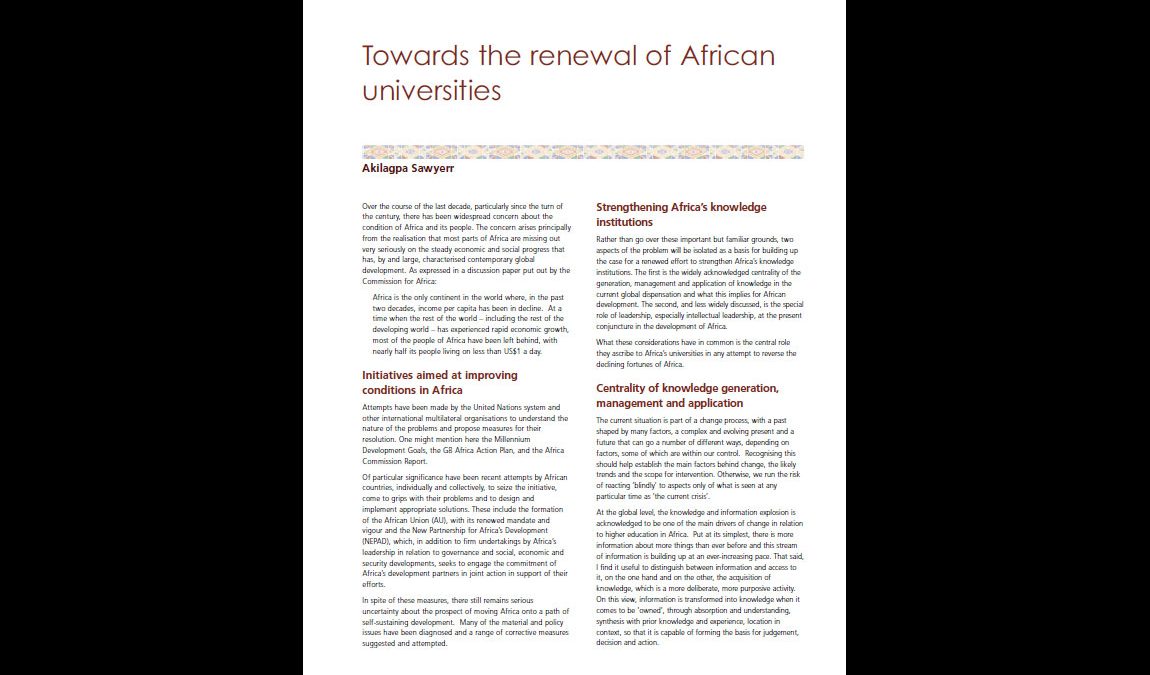 Towards the Renewal of African Universities (The 2004 Gladwyn Lecture)